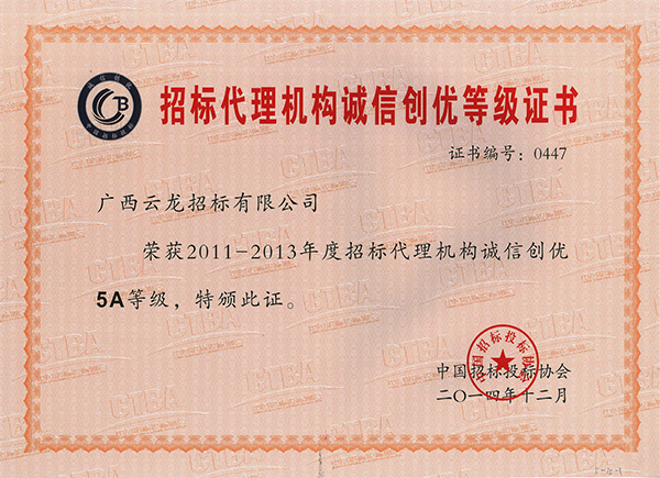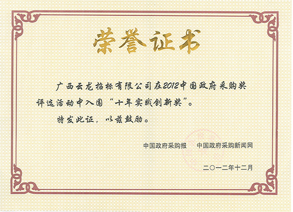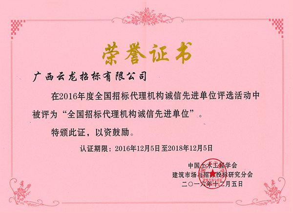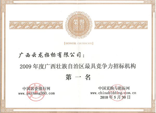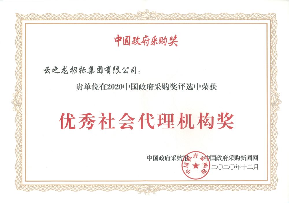 04中國采購與招標網榮譽證書