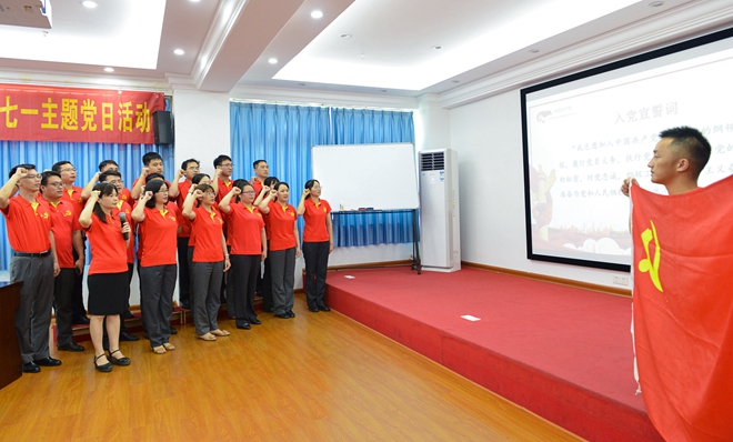 全體黨員舉起右手,面對黨旗,莊嚴宣誓。鏗鏘有力的誓言響徹會場,展現出黨員同志們堅定的政治信念和矢志不渝的奮斗決心。