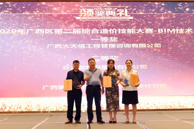 2020年9月3日,從廣西區(qū)第二屆綜合造價(jià)技能大賽上獲悉,云之龍集團(tuán)BIM團(tuán)隊(duì)經(jīng)過激烈角逐:榮獲BIM專業(yè)廣西區(qū)企業(yè)賽二等獎(jiǎng)。