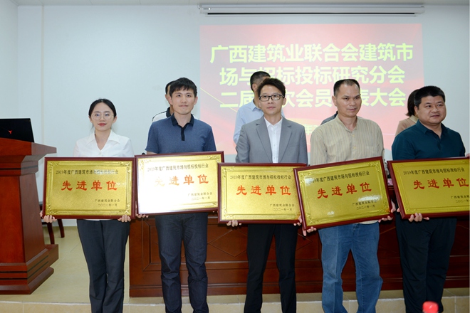 2021年3月29日,廣西建筑業聯合會建筑市場與招標投標研究分會二屆三次會員代表大會順利召開,會上通報了分會2020年工作情況,表彰了2019年評先評優(誠信創優)先進單位和個人。云之龍集團獲評2019年度廣西建筑市場與招標投標行業先進單位。這已是云之龍集團連續十年榮獲該獎項。