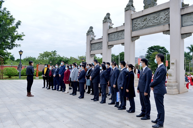 在講解員的帶領(lǐng)下,全體黨員參觀了南寧市孔廟的欞星門(mén)、狀元門(mén)、狀元橋、泮池等。黨員同志了解孔廟歷史,聆聽(tīng)孔夫子等諸位先賢的智慧故事,追憶古代圣賢的高尚廉潔品質(zhì)。