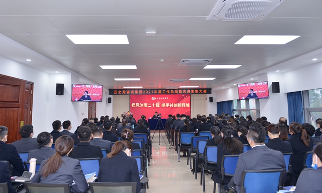 2022年1月22日,云之龍咨詢集團舉辦2021年年終總結暨表彰大會。會議以集團總部一號多功能廳作為主會場,各地市分公司作為分會場。400多名云之龍人通過線上線下雙重方式參與會議。