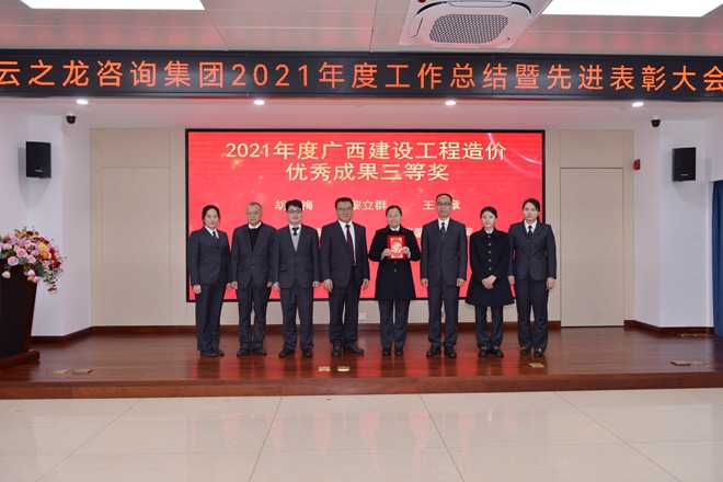 云之龍咨詢集團董事長梁榮森、總裁王鐿霖參加會議并作重要講話。王鐿霖總裁作2021年度工作報告,部署下一年重點任務。會議表彰了2021年涌現的先進集體和個人。