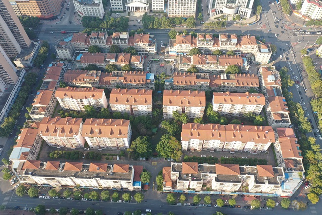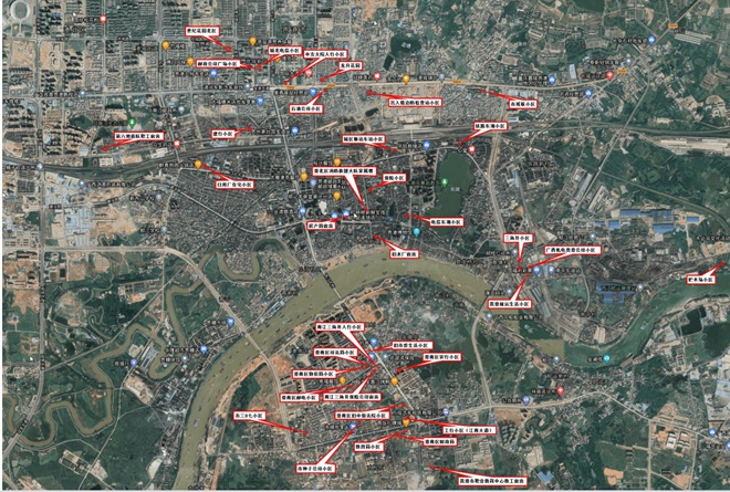 貴港市2021年市本級老舊小區改造項目實地踏勘時航拍的照片。
