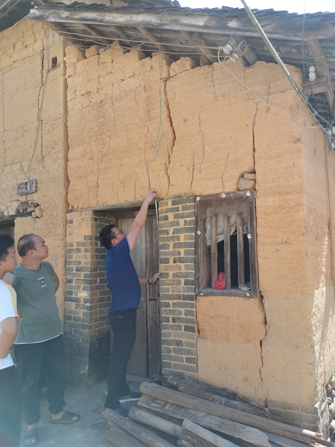2021年6月17日,在執行平南縣大鵬鎮波頭村林屋屯精品示范屯改造項目時,滕德濤經理在進行現場測量。