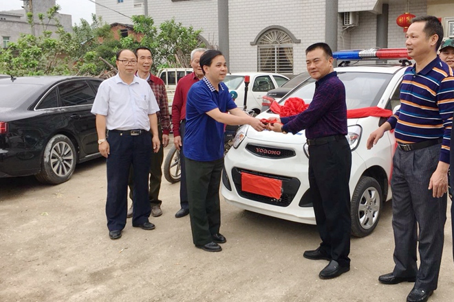 此外,集團還給坡心村治安聯防隊送去了一臺四輪電動巡邏車,有效助力了該村的治安聯防工作。