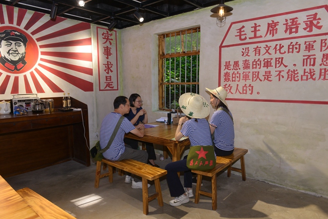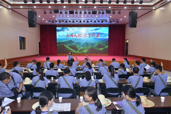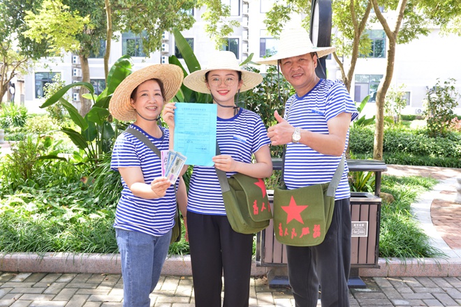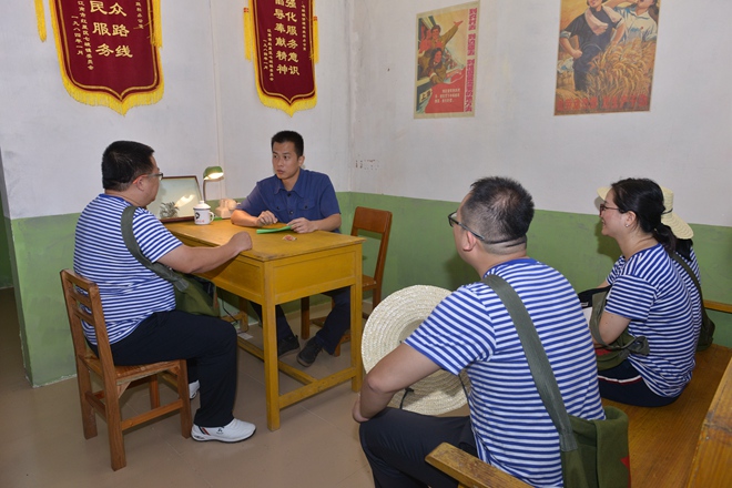 這一次的廉潔教育活動,形式新穎,“走新”又“走心”?;顒赢斕欤h員同志來到南寧市七坡林場,沉浸式體驗廉政教育主題劇本游《叩問初心》。大家換上藍白勞動T恤,戴上草帽,挎上“為人民服務”的斜挎包,迅速“穿越”到20世紀80年代。