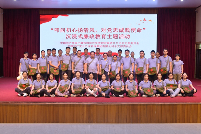 為深入學習貫徹黨的二十大精神,進一步加強黨員的黨性修養,從思想上筑牢拒腐防變的思想防線,2023920日,云之龍咨詢集團黨總支部與南寧路橋公司黨總支部開展“叩問初心揚清風,對黨忠誠踐使命”沉浸式廉潔教育主題活動。