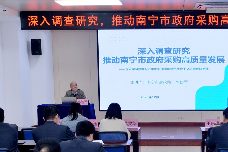 黨課圍繞學深悟透習近平新時代中國特色社會主義思想,緊扣職能職責,結(jié)合工作實際,用黨的創(chuàng)新理論指導實踐、推動工作。他要求,黨員同志要把理論學習作為重中之重,做到既通覽全局、知曉整體,又要把握重點,系統(tǒng)化、全方位、多角度學習領悟,不僅有“質(zhì)”更應有“效”。陳智軍副處長希望全體黨員提高認識,更好掌握習近平新時代中國特色社會主義思想,加快推動南寧市政府采購高質(zhì)量發(fā)展,為新時代壯美廣西建設貢獻一份力量。