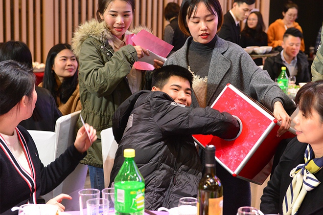 用餐環(huán)節(jié),總裁王鐿霖?cái)y云之龍集團(tuán)高層領(lǐng)導(dǎo)給員工及家屬敬酒拜年,感恩大家一年來(lái)的辛勤付出,恭賀新春。緊接著集團(tuán)行政部總經(jīng)理劉斯娜帶來(lái)了驚喜連連的抽獎(jiǎng)環(huán)節(jié),更是為晚宴增光添彩,集團(tuán)為大家準(zhǔn)備了品種豐富的大禮包和家用禮品,主持人不斷宣布各類禮品的得主,引起陣陣歡呼,歡聲笑語(yǔ)充滿了整個(gè)大禮堂,把整個(gè)晚宴氣氛推上了最高潮。
