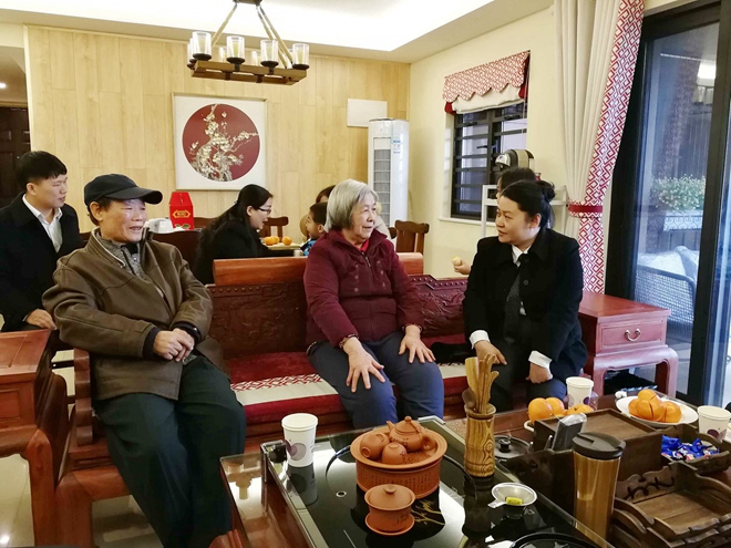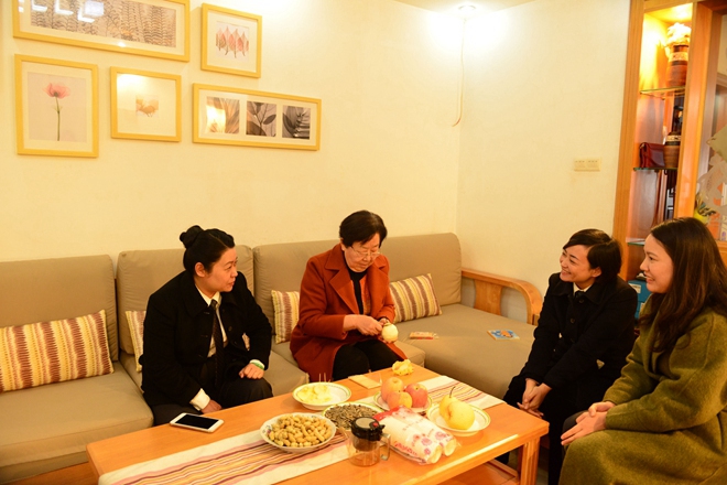 在南寧分公司員工劉詩施家里,王總裁拉著劉詩施母親的手,親切交談,她說,十分感謝家屬的付出,使得員工可以在集團前線努力打拼。劉詩施是一位非常優(yōu)秀的員工,工作出色,每年承擔大大小小項目上百個,為集團發(fā)展作出了很多貢獻。