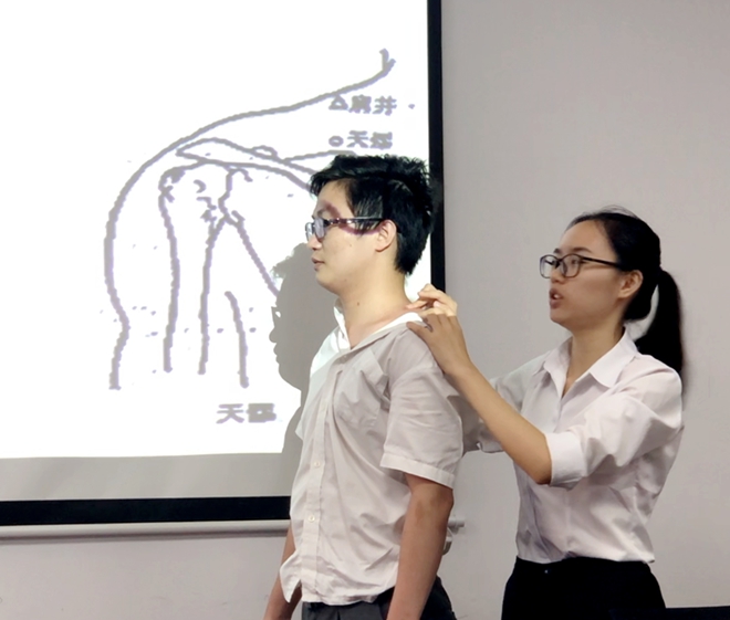 楊老師示范頸椎按摩