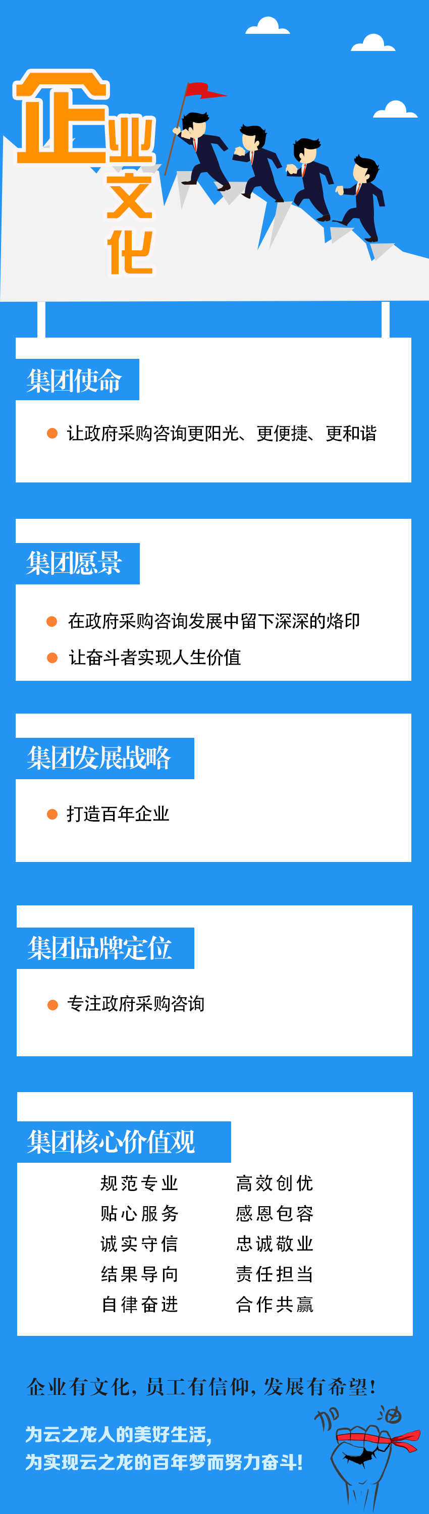 企業(yè)文化宣貫作為一項(xiàng)長(zhǎng)期的戰(zhàn)略任務(wù),云之龍集團(tuán)將不斷創(chuàng)新宣貫形式,積極營(yíng)造濃厚的學(xué)習(xí)企業(yè)文化氛圍,與所有云之龍人一道深層次地了解企業(yè)文化發(fā)展歷程,進(jìn)一步提升大家對(duì)企業(yè)文化核心理念的認(rèn)知認(rèn)同。同時(shí),云之龍人要同心追夢(mèng)、奮楫創(chuàng)業(yè),將企業(yè)文化內(nèi)化于心,外化于行,把企業(yè)文化理念轉(zhuǎn)化為核心競(jìng)爭(zhēng)力,積極開拓政府采購咨詢領(lǐng)域。
