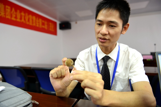 項目經理黃春生的辦公桌上擺著一顆已經風干的橘紅,他說,這是一顆有故事的橘紅。