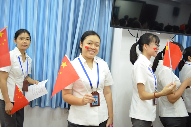 手中搖動鮮紅國旗