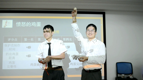 培訓(xùn)中,助教蔣銀亮還為大家策劃了“憤怒的雞蛋”和“聰明的撲克牌”兩項(xiàng)游戲。“憤怒的雞蛋”手工制作游戲考驗(yàn)大家在短暫幾天之內(nèi)是否真正學(xué)會(huì)了團(tuán)結(jié)協(xié)作,不落下任何一個(gè)人;“聰明的撲克牌”則展現(xiàn)了溝通和效率的聯(lián)系,越是能夠“共用大腦”、越是信息交換到位,那么賽跑的速度就會(huì)越快。這些游戲中蘊(yùn)藏的道理,讓學(xué)員們?cè)隗w驗(yàn)和奔跑中入腦入心。