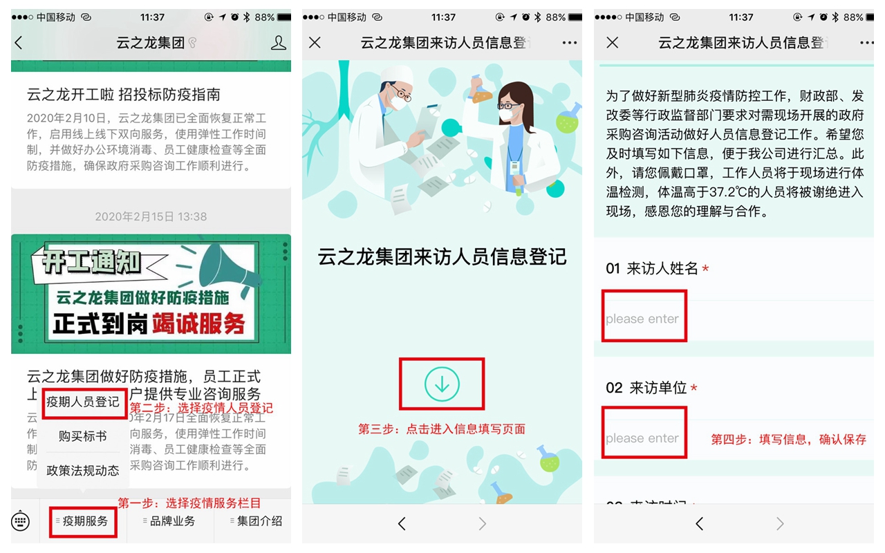 線上登記,安全來訪,云之龍集團各類項目有序開展